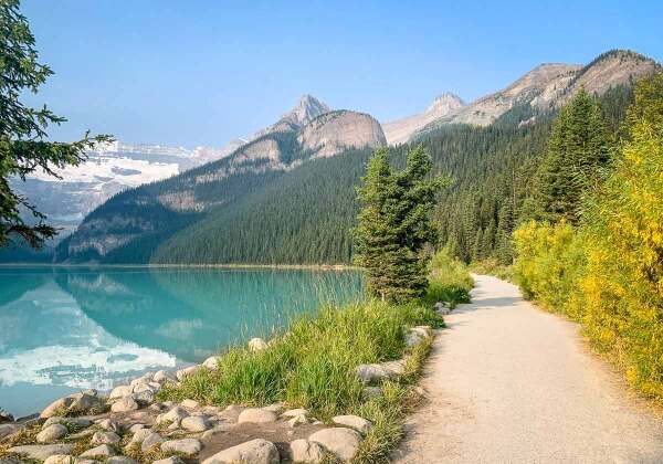 The trail begins at Lake Louise and follows the shoreline before ascending through a forested area. Along the way, hikers will pass by beautiful alpine meadows, towering peaks, and crystal-clear streams. The highlight of the trail is reaching the Plain of Six Glaciers Tea House, where visitors can enjoy a hot beverage and homemade treats while taking in breathtaking views of the glaciers.